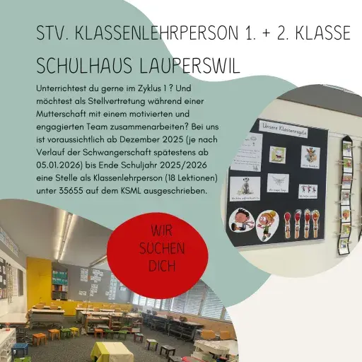 Veröffentlicht am: Mittwoch, 27. August 2025Klassenlehrperson 1. + 2. Klasse, 18 LektionenStellenanzeige