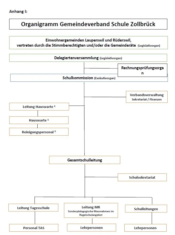 Die Organe des Verbandes sind die Delegiertenversammlung bestehend aus Delegierten der Verbandsgemeinden und die Schulkommission. Diese stellt die strategische Führung des Gemeindeverbandes sicher und besteht aus sechs Mitgliedern. Sie plant und koordiniert die Verbandstätigkeit.